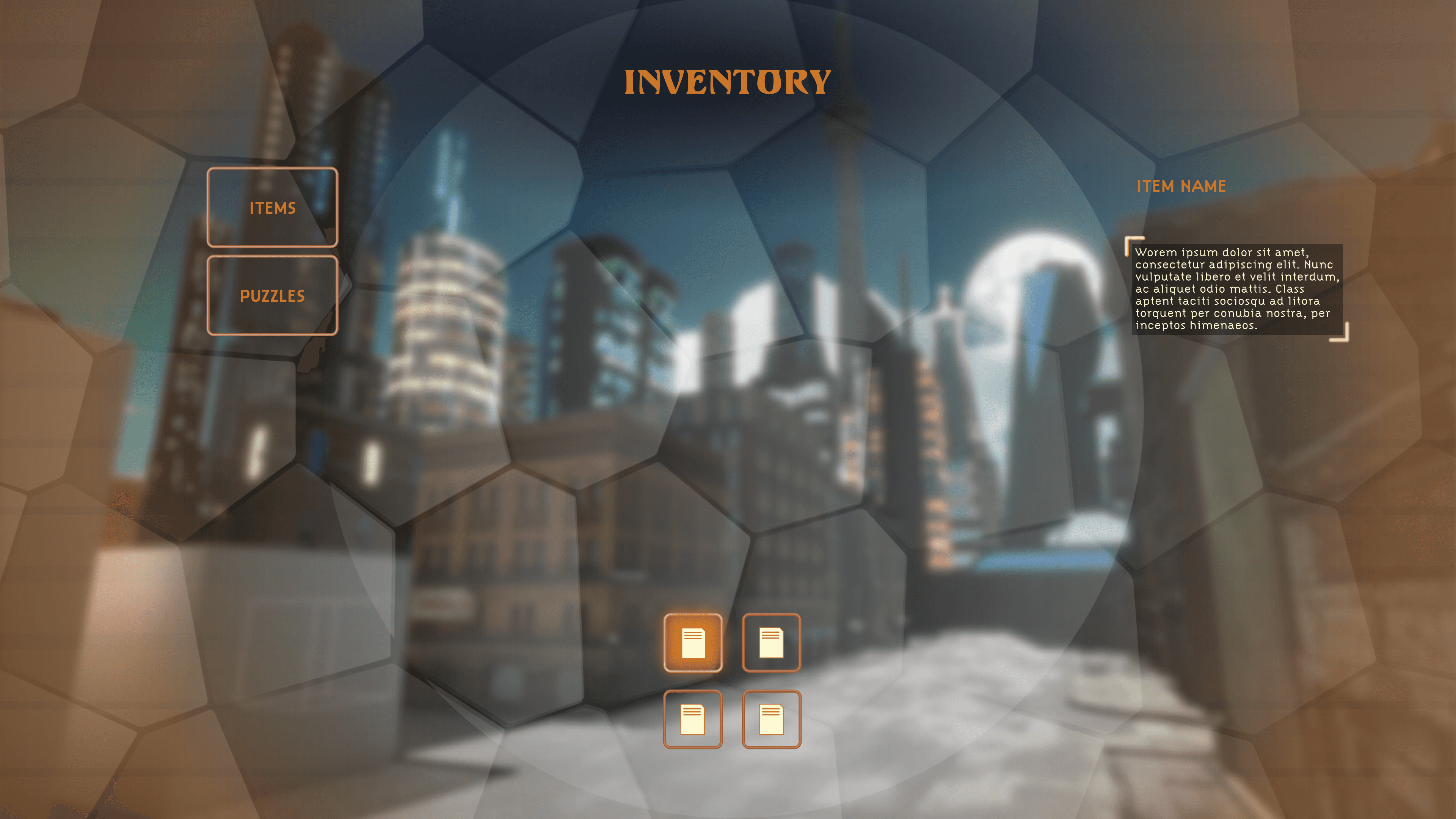 The game features an inventory system that allows players to collect, view and interact with collected gameplay items obtained during gameplay. Accessed by hot swapping (number keys), players can select an item to ‘Use (X)’ in gameplay to solve puzzles or ‘Inspect(E)’ and ‘Rotate (Left Mouse)’ for hidden clues.