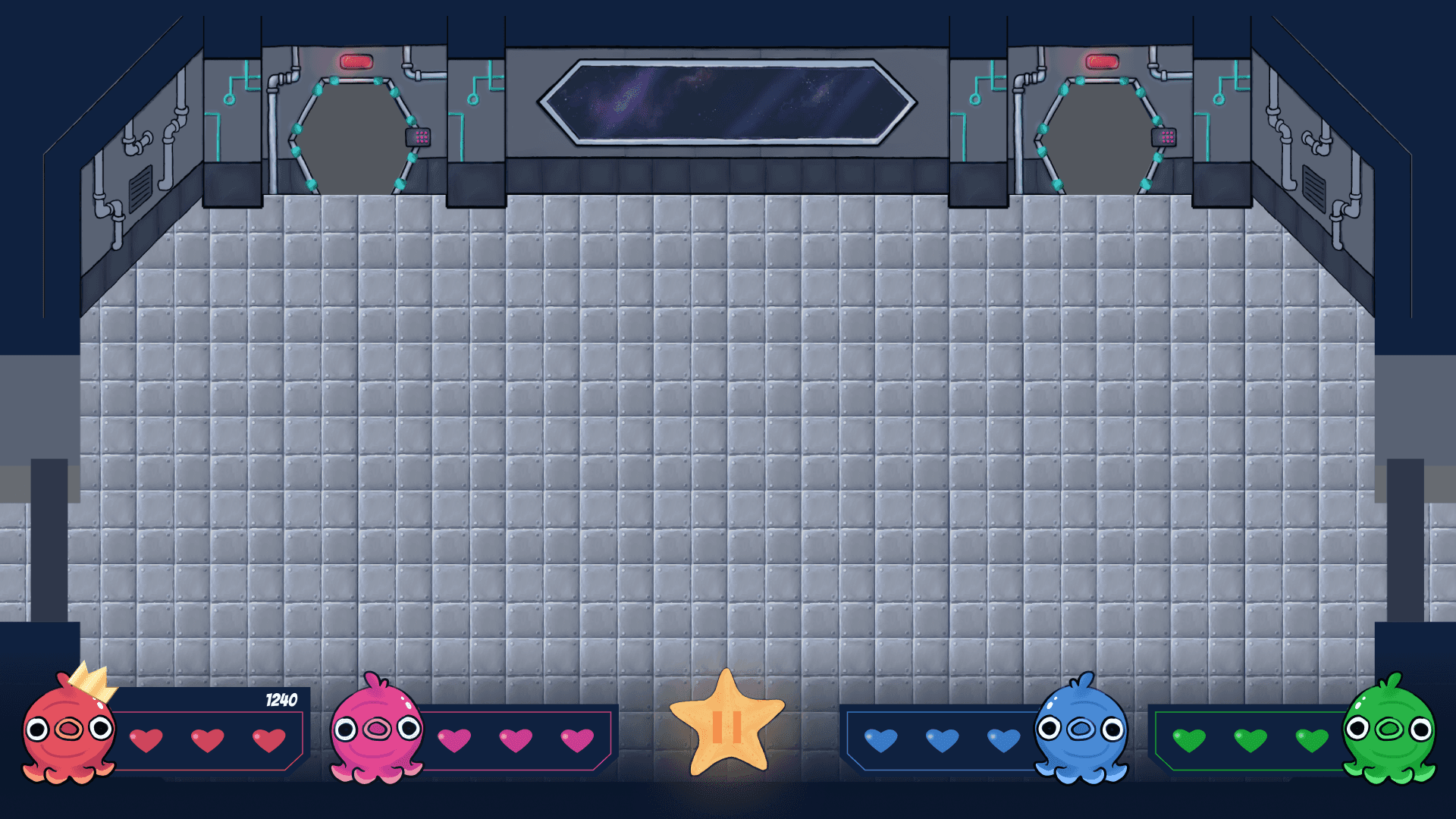 Minimal clutter design so the screen stayed readable even with four players interacting at once.