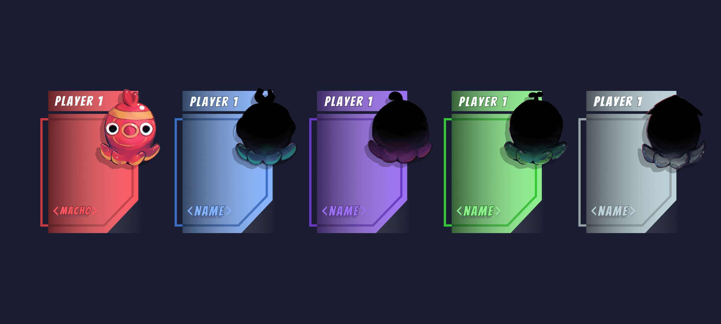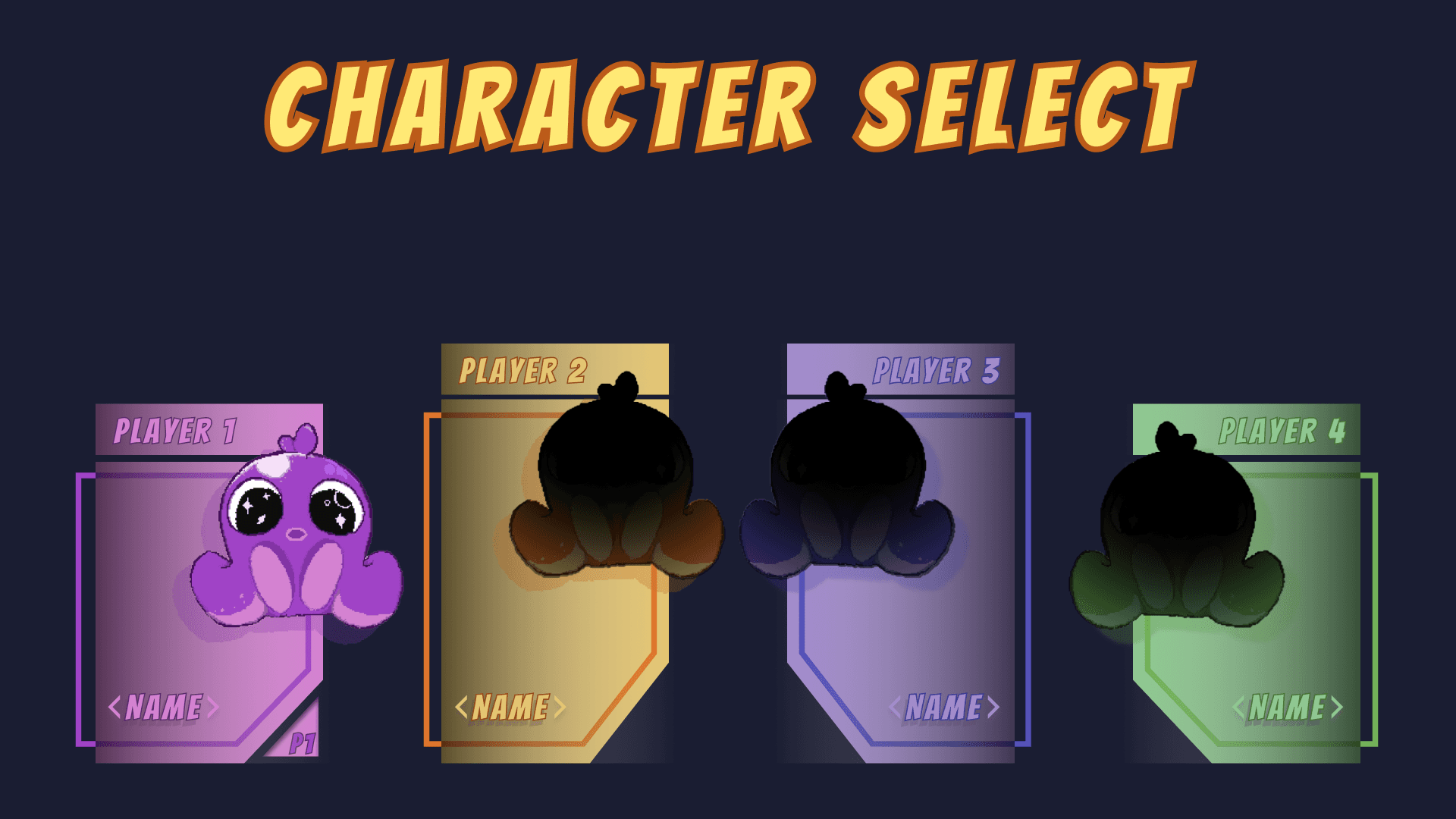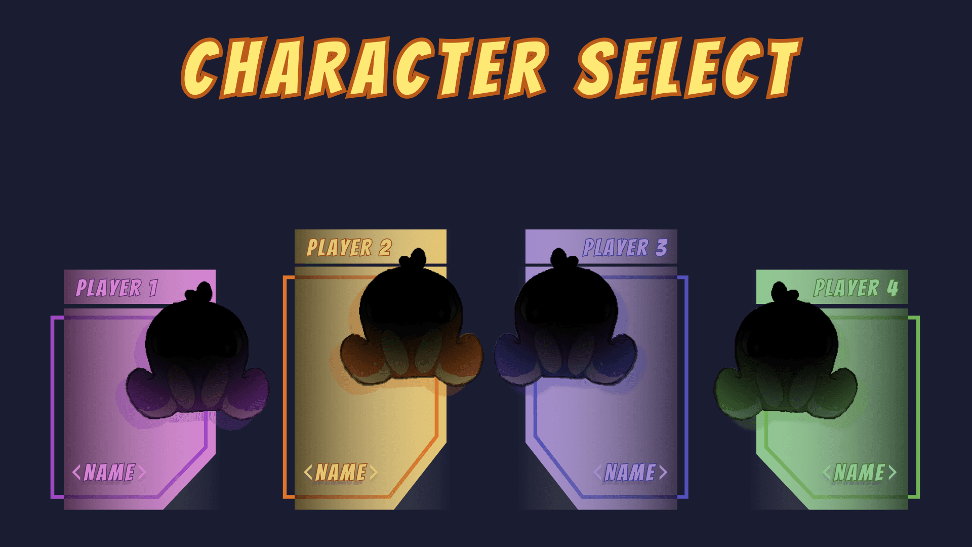 The character select menu appears before the start of the game. It allows players to cycle through the available player characters. Only one player character can be played at a time.