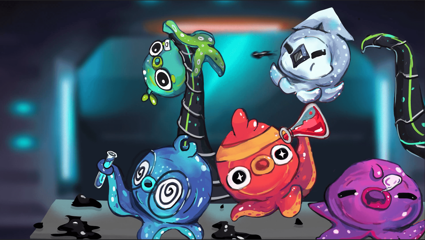 Inkyway Galaxy: Takoyu Rescue! is a casual, cooperative, top-down shoot 'em-up inspired by classic arcade games in 2D, hand-drawn graphics. Up to 4 players must work together to defeat waves of enemies but individually compete for the highest score. The game follows four space-octopi as they fight their way through the evil scientist Dr. Moray’s ship to free their missing sibling.