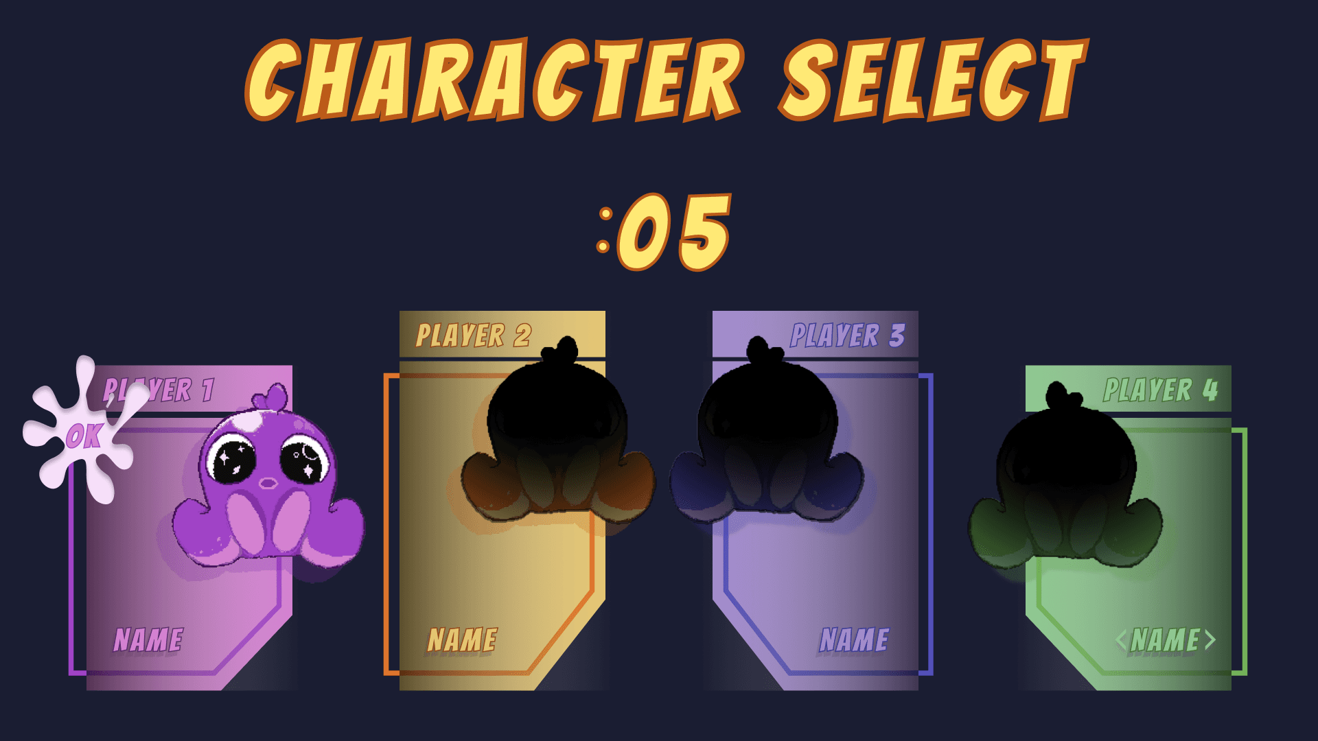 Once players confirm their selection, visualized with an ink splat ‘OK’, the game begins. After players have confirmed their selection a short timer will start, giving them the option to change their minds before the game begins.
