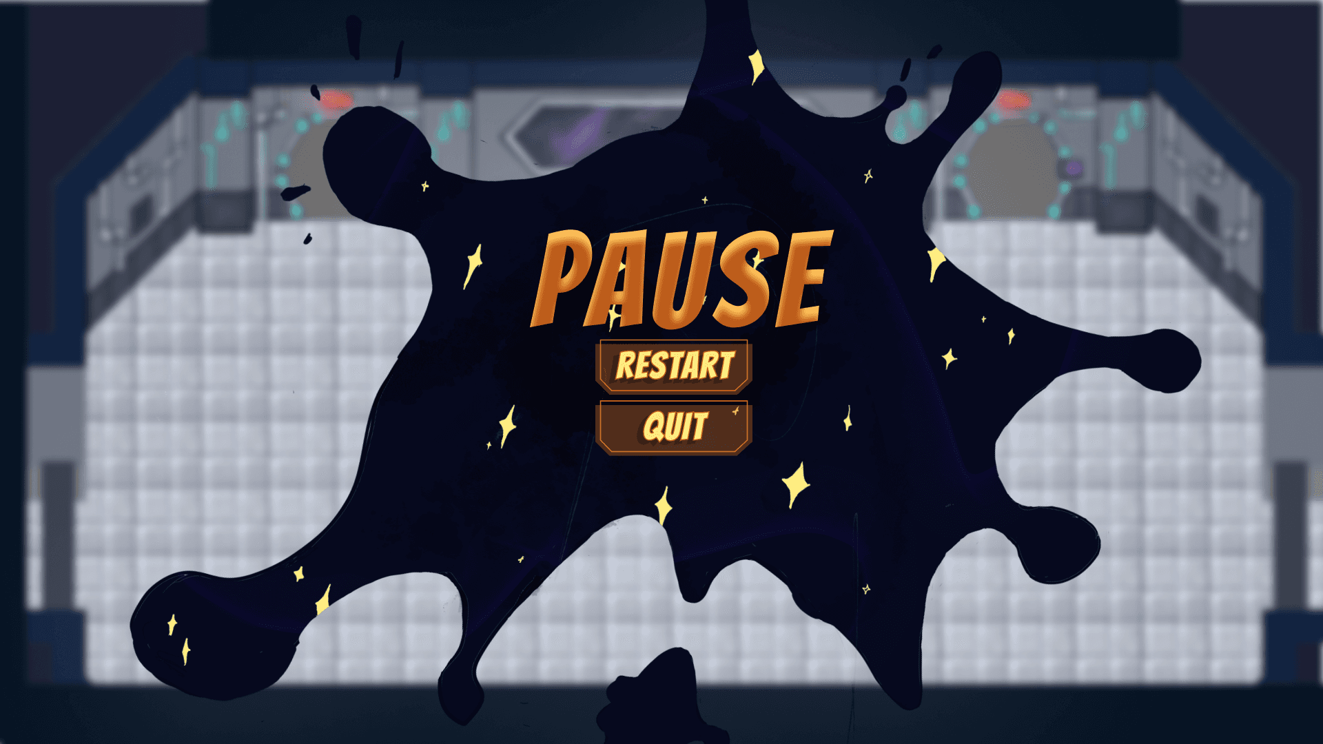 During gameplay, players have the option to pause, which will bring up a screen showing which player paused and the option to resume or quit the game.